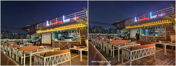 在夜景拍攝上,可以看到OPPO Reno5 Pro+與iPhone 12在成像上表現(xiàn)出一定的差距。盡管畫(huà)面燈光色彩斑斕復(fù)雜,但這兩款手機(jī)都表現(xiàn)的非常出色。但由于成像算法的不同,兩者在成像上也有所差異。其中iPhone 12畫(huà)面的色彩對(duì)比度、飽和度更高。而OPPO的優(yōu)勢(shì)則是對(duì)高光的壓制更加理想,畫(huà)面的色彩呈現(xiàn)得更為均勻,整體畫(huà)面更為討喜。