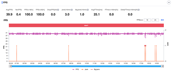 根據(jù)測試結(jié)果,小米11在一場游戲當(dāng)中跑出了每秒39.9幀的成績。而且根據(jù)圖表可以看出,期間出現(xiàn)的卡頓情況并沒有明顯的反饋到幀數(shù)上面,應(yīng)該是游戲在進行數(shù)據(jù)處理。