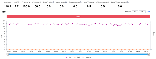 期間小米11的幀數(shù)平均為每秒118幀,其他的幾個分段大概在115到119之間,所以基本可以看作是滿幀運行。