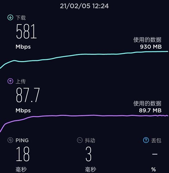 從權(quán)威測(cè)速軟件Speedtext所示結(jié)果來看,OPPO A55的5G平均速率也能達(dá)到581Mpbs/s。在相同網(wǎng)絡(luò)條件下,通過軟件商城下載一款1.91GB大小的游戲,全程只需40秒左右,峰值速率高達(dá)60M/s,單純從5G表現(xiàn)去看,OPPO A55是十分合格的。
