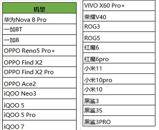 首先,我們不妨看看目前《王者榮耀》官方的開放名單。除了獨占首發(fā)的華為Nova8 Pro與有著深度合作關系的榮耀V40以外,我們可以看到不少驍龍865或驍龍888平臺的機型,也是覆蓋了當前眾多熱門的高刷旗艦手機,詳細的名單如下——