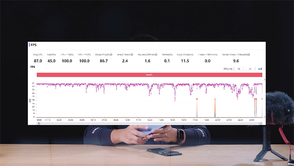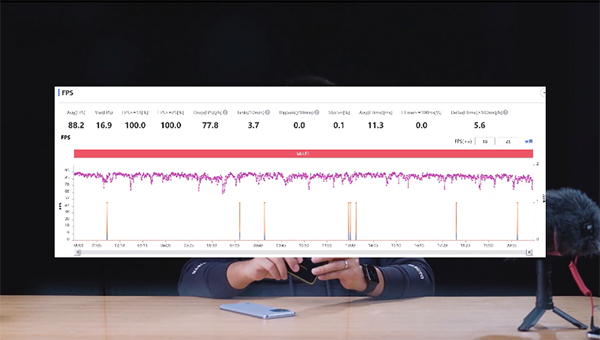 大概在五分鐘之后,隨著小米11的機身發(fā)熱,其幀率抖動的幅度也變大了,后面會出現(xiàn)了明顯掉幀現(xiàn)象,一加8T仍舊是有著較為穩(wěn)定的發(fā)揮。所以,搭載驍龍865的一加8T平均幀率有88.2幀,而驍龍888的小米11只有87幀,這結果確實有點令人意外了。