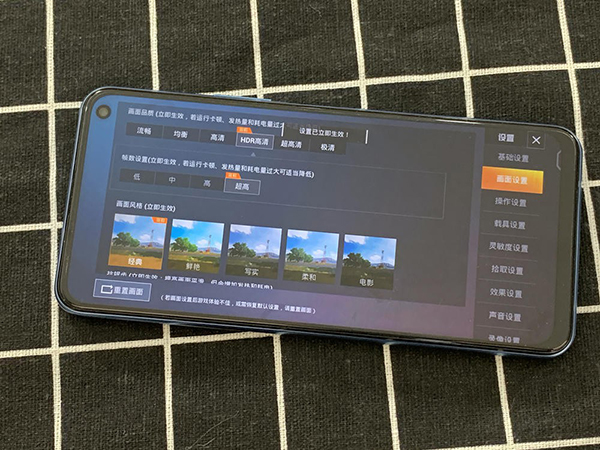 因此,在第二局游戲中,我們將幀數(shù)設(shè)置降一個(gè)檔,選擇了“超高”,畫(huà)質(zhì)選擇了光子給iQOO Z1x開(kāi)放的最高畫(huà)質(zhì)“HDR高清”。