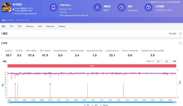 通過(guò)PerfDog的幀數(shù)曲線圖,可知iQOO Z1x在此設(shè)置下玩《和平精英》較為流暢,沒(méi)有太多明顯的長(zhǎng)短幀,渲染較為均勻。圖示的那幾次波動(dòng),都發(fā)生在城區(qū)巷戰(zhàn),玩家很多,手雷、子彈橫飛,不斷的跳動(dòng)、走位、開(kāi)鏡、關(guān)鏡,一定時(shí)間內(nèi)接受的數(shù)據(jù)和發(fā)出的數(shù)據(jù)都變大了,所以渲染受到了一定的影響。