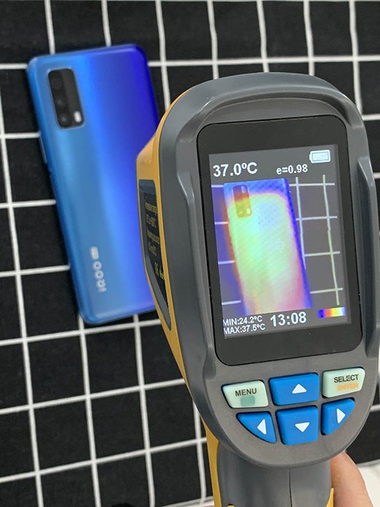 因?yàn)榇司钟螒蚴求w感溫度相對(duì)最熱,所以我們也在游戲結(jié)束后用熱敏測(cè)溫槍進(jìn)行實(shí)測(cè),實(shí)測(cè)顯示iQOO Z1x在此設(shè)置下,正面溫度39.5℃,高溫區(qū)域主要集中在“額頭”附近,背面溫度37.0℃,高溫區(qū)域主要集中在攝像頭模組附近。就實(shí)際溫度而言,優(yōu)勢(shì)沒(méi)有芯片溫度那么明顯,普遍也就低了3℃——5℃,但具體溫度值對(duì)人體非常舒適,畢竟都沒(méi)超過(guò)40℃,還沒(méi)達(dá)到夏天洗澡水的溫度。