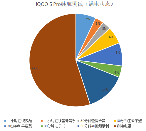 如果你質(zhì)疑iQOO 5 Pro 4000mAh的電池容量是否夠用,那么可以參考下面這張續(xù)航測試圖表。