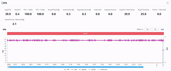 《和平精英》游戲測試中,在超高清+超高幀率以及開抗鋸齒模式下,最高40幀的情況下Redmi K40半小時平均幀率達(dá)到39.9幀,基本上全程能夠滿幀率運行,大家可以火力全開了;隨后在HDR高清+極限幀率模式下,Redmi K40幀率則穩(wěn)定在59.9幀,所以在游戲這塊如果大家平時玩游戲基本不需要太過擔(dān)心。