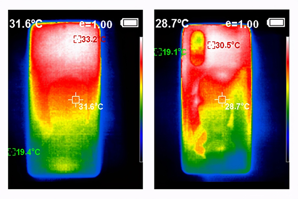 散熱方面,Redmi K40系列配備液冷立體散熱系統(tǒng),液冷銅管。石墨片等多重散熱材質(zhì)對機身重點熱源實現(xiàn)了全覆蓋。實際的測試中,整個1小時中,前半小時模式游戲后正面最高溫度33℃,背部最高溫度30.5℃。后半小時模式結(jié)束后整個1小時測試Redmi K40正面最高溫度來到了39℃,背部最高溫度36.2℃,并不能算優(yōu)秀,只能說整體上還不錯,當(dāng)然相較驍龍888來說這溫控就好很多了,畢竟驍龍870采用了更加成熟的7nm工藝。