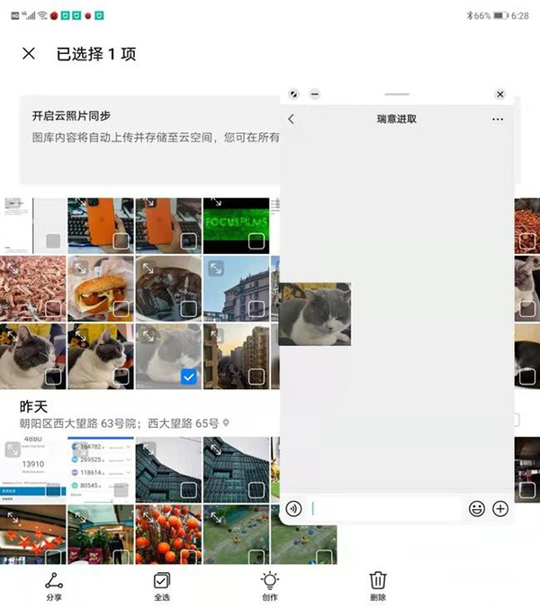 多任務(wù)還擁有更多的方式,比如預(yù)覽浮窗,拖拽分享以及單應(yīng)用多任務(wù)等等。比如我們想要通過微信分享文件,就可以直接用拖拽的方式把照片拖到微信里傳輸,進(jìn)行跨應(yīng)用的操作。