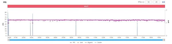 《和平精英》開(kāi)啟默認(rèn)最高畫(huà)質(zhì)HDR高清和極限幀率,三星S21 Ultra的平均幀率為59.4FPS。大多數(shù)時(shí)候游戲畫(huà)面維持在60FPS的滿幀運(yùn)行,從幀數(shù)曲線上看,整個(gè)畫(huà)面的幀數(shù)變化并不大??梢钥吹郊幢闶窃谌绱烁弋?huà)質(zhì)的條件下,三星S21 Ultra的性能輸出還是相當(dāng)穩(wěn)定。