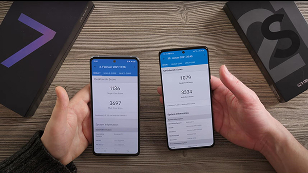 而對(duì)于性能方面的區(qū)別,iQOO 7和三星S21 Ultra之間由于搭載了不同的處理器,所以在安安兔跑分和GeekBench的跑分結(jié)果上,有著區(qū)別比較明顯的成績(jī)。iQOO 7搭載的驍龍888處理器,安兔兔跑分為718662分,GeekBench的單核分?jǐn)?shù)為1136分,多核分?jǐn)?shù)為3697分。三星S21 Ultra的安兔兔跑分為633254分,GeekBench的單核分?jǐn)?shù)為1079,多核分?jǐn)?shù)為3334分。從跑分來看,iQOO 7有著明顯的優(yōu)勢(shì),畢竟驍龍888處理器比獵戶座2100要強(qiáng)不少。所以從跑分測(cè)試結(jié)果來看,iQOO 7要比三星S21 Ultra更占優(yōu)勢(shì)。