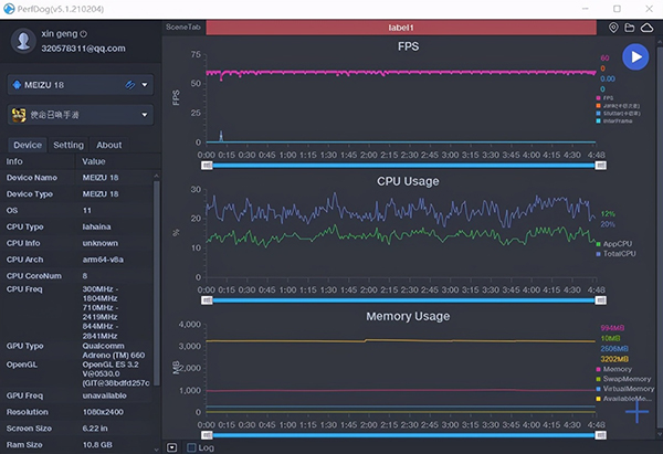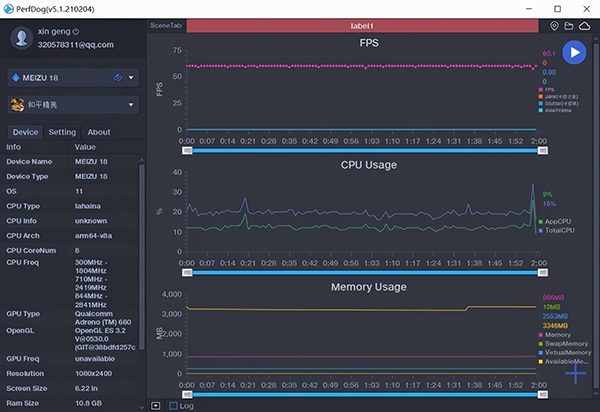 筆者實測《和平精英》《使命召喚手游》和《原神》3款主流游戲,通過GameBench監(jiān)測其幀率,游戲過程中的幀率輸出都很穩(wěn)定,基本都可以達(dá)到60幀滿幀體驗,即便是號稱處理器殺手的《原神》,幀率波動也很小。