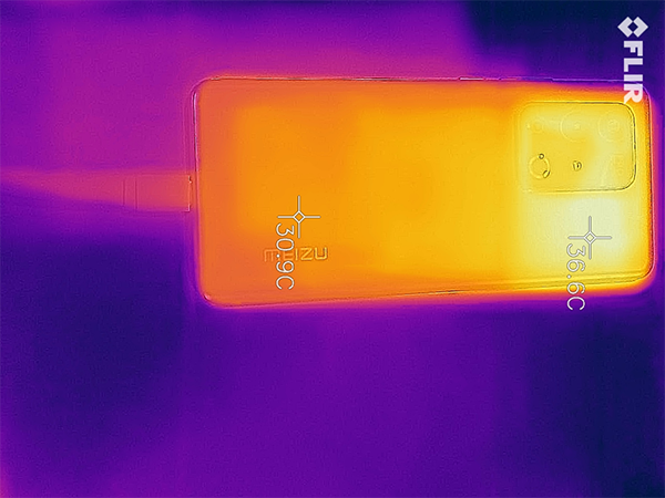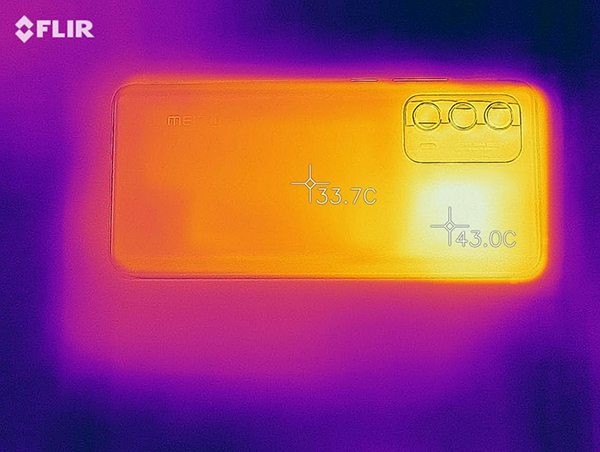 不過在多次跑分后,驍龍888的發(fā)熱問題在魅族18系列上依然存在,特別是小尺寸的魅族18,由于機身面積更緊湊,對散熱更是挑戰(zhàn)。在安兔兔的兵馬俑場景(對手機的GPU、CPU負荷最大值),最大峰值溫度達到了43℃。不過后半段對手機的負荷下降后,溫度也可以保持在38℃左右,跑分結(jié)束后也可以迅速降溫,還算不錯。