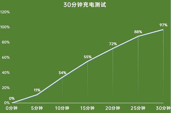 在30分鐘充電測(cè)試中,真我GT的電量從0%直接充到了97%,持續(xù)充滿電大概率用不了35分鐘。毫無(wú)疑問,realme對(duì)于65W閃充技術(shù)的挖掘變得更深入了,快充速度也有增加。
