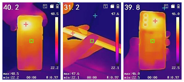 熱成像圖顯示,機(jī)身表面溫度最高為48.5℃,出現(xiàn)在屏幕上方,而邊框和手機(jī)背面的表面最高溫度分別為47.6℃和46℃,可以看出魅族在手機(jī)散熱方面是有進(jìn)行優(yōu)化的,壓制住性能強(qiáng)大的888不是簡單的事,特別是機(jī)身小巧的魅族18,散熱方面會(huì)比較吃虧。
