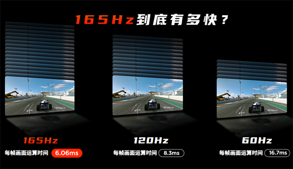 在165Hz的超高刷新率下,500Hz單指采樣率可以將點(diǎn)擊后的響應(yīng)時(shí)間縮短至8ms,360Hz多指采樣率的響應(yīng)速度也僅為8.8ms,這也使得玩家的操作更加跟手。