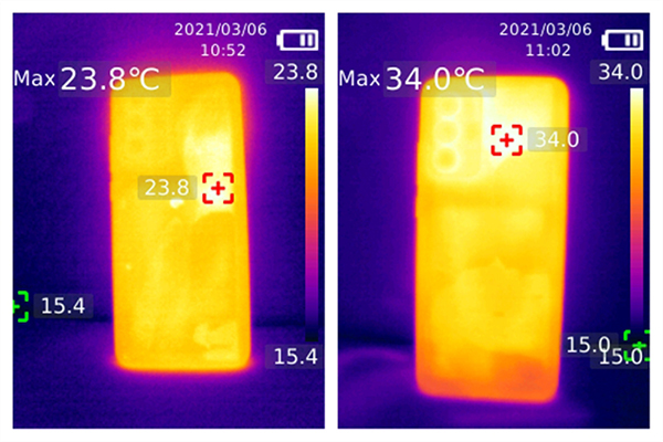 在今后的手機(jī)評測當(dāng)中,我們開始引入測溫環(huán)節(jié),具體是在恒溫的室內(nèi)環(huán)境下進(jìn)行安兔兔跑分測試,使用測溫槍測量跑分前后的機(jī)身最高溫度。