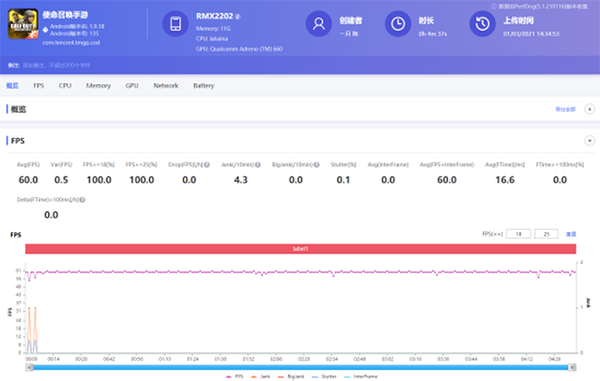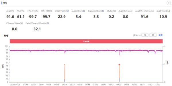 使命召喚手游的優(yōu)化大家有目共睹,游戲的打擊感和流暢度都做得非常好,所以測試中也選擇了難度更高的“跑刀”玩法,然而這并不能攔住驍龍888,平均成績直接60幀滿分通過。