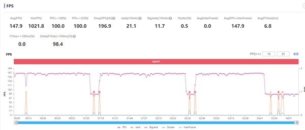 從Perfdog的數(shù)據(jù)采集結(jié)果顯示,在開啟最高游戲畫質(zhì)和高幀率的條件下,游戲中FPS全程穩(wěn)定在接近90,在觸控采樣率的支持下,無論是走位還是釋放連招都能得心應(yīng)手。