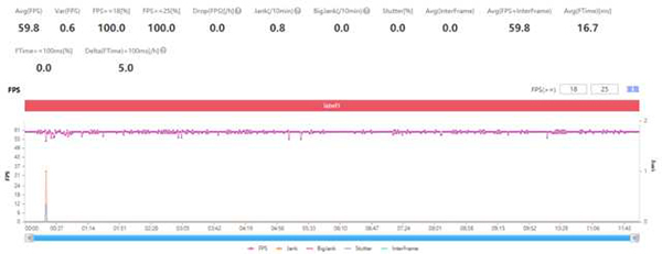 在和平精英的極限幀率模式下,魅族18 Pro的平均幀率為59.8,為了測試在不同環(huán)境下它的幀率表現(xiàn),我們也進(jìn)行了諸如行駛、槍戰(zhàn)、潛水甚至跳槍等騷操作。在各種嘗試下,魅族18 Pro的幀率也始終在60幀上下浮動,不得不說,經(jīng)過OneMind5.0智能思維引擎的加持,驍龍888的潛能在魅族18 Pro的身上得到了更好的開發(fā)。