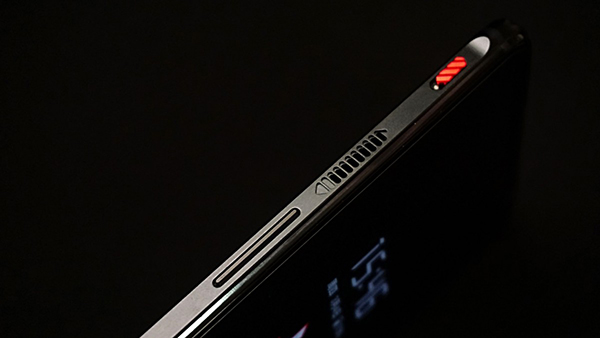 紅魔游戲手機的前作就已經開始內置風冷散熱器,當時我還挺不明白,小小的手機里還要硬裝一個風扇,這到底是進步還是倒退?紅魔6 Pro依然有風扇,機身左側上方是進風口,右側上方是出風口,形成一個對流的風道。