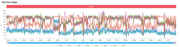 而在CPU各個(gè)核心的調(diào)度方面,3.2GHz的超大核在普通場(chǎng)景下占用率基本在50%左右,但是到了卡頓場(chǎng)景時(shí)也會(huì)及時(shí)救場(chǎng),而2.42Hz的大核則承擔(dān)了主要的性能輸出,整體性能調(diào)度方面處于一個(gè)比較合理的狀態(tài)。