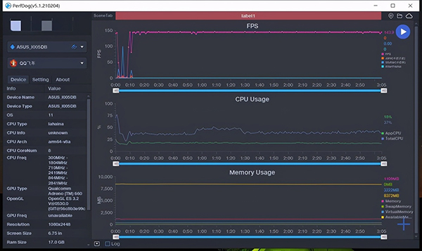 可以看到,在騰訊ROG游戲手機5強悍的性能下,這兩款游戲均可以144幀率流暢運行。更值得一提的是,因為這一代騰訊ROG游戲手機5的觸控采樣率提高到了300Hz,所有游戲的跟手性有了非常明顯的提升,尤其是對于操控比較敏感的FPS類游戲,體驗對比普通的手機有了質的提升。