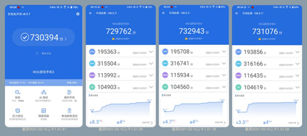 四輪安兔兔的跑分成績分別為730394,729762分和732943,731076分,超越了排行榜上99%的用戶。此刻請大聲告訴我,誰才是站在性能頂端的男人。