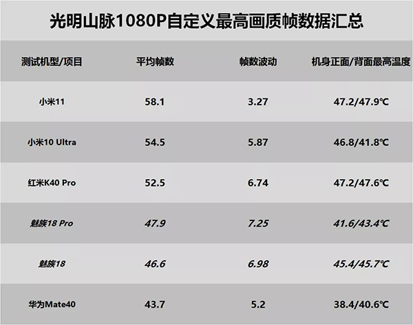 《光明山脈》中,魅族18系列流暢度被發(fā)熱、幀率雙高的小米機(jī)型甩開。魅族18和18 Pro幀數(shù)差距不大,但魅族18 Pro的發(fā)熱明顯更低體驗(yàn)更好,而魅族18可能因?yàn)闄C(jī)身更為緊湊,機(jī)身發(fā)熱嚴(yán)重,已經(jīng)能感覺(jué)到輕微燙手。
