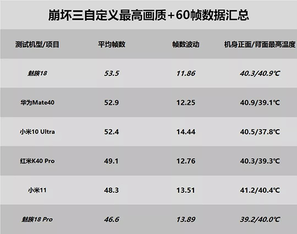 《崩壞三》中,魅族18和魅族18 Pro的差距令人意外。兩款機(jī)型發(fā)熱差不多,但18 Pro的幀率卻墊底,甚至不如翻車的小米11,幀率波動(dòng)也較大。而魅族18直接成了榜單中平均幀率和波動(dòng)表現(xiàn)最優(yōu)秀的機(jī)型,發(fā)熱控制也不錯(cuò),可能是測(cè)試誤差,或者魅族18 Pro對(duì)于這款游戲的優(yōu)化不到位,我們后續(xù)會(huì)補(bǔ)充測(cè)試。