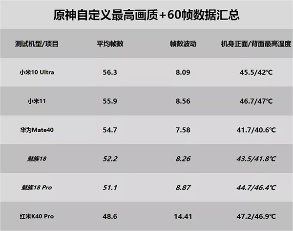 《原神》中,魅族18和魅族18 Pro在榜單中所處的位置和《和平精英》、《光明山脈》相似,兩款機(jī)型的幀率表現(xiàn)相近,魅族18甚至更好,而且離奇的是機(jī)身發(fā)熱也更小,跟《崩壞3》一樣,可能是測(cè)試誤差,或者魅族18 Pro對(duì)于這款游戲的優(yōu)化不到位,我們后續(xù)也會(huì)補(bǔ)充測(cè)試。