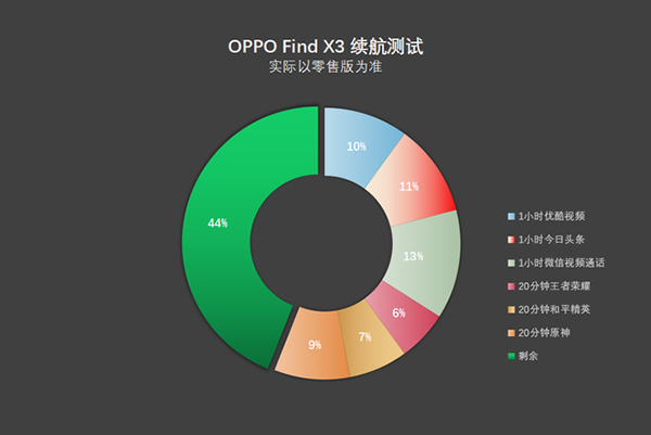 在實(shí)際續(xù)航測(cè)試中,OPPO Find X3經(jīng)過(guò)我們四小時(shí)綜合續(xù)航測(cè)試后,仍剩余47%的電量,表現(xiàn)相當(dāng)喜人,擔(dān)心輕薄機(jī)身會(huì)影響續(xù)航的朋友們也可以放心啦。
