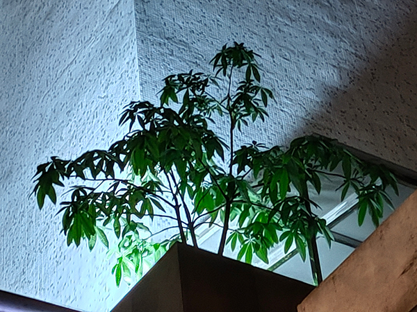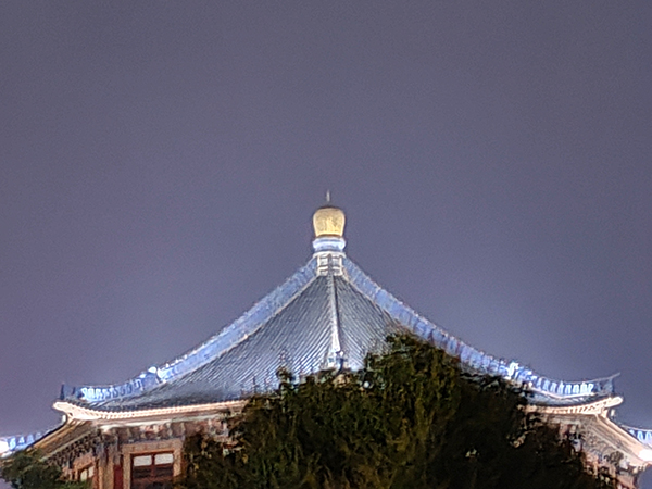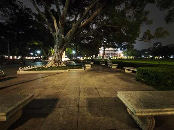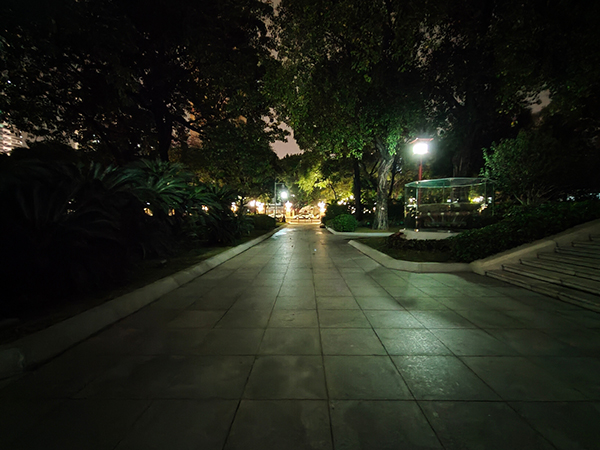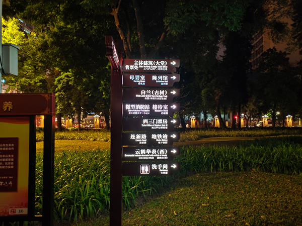 晚上光線沒有那么復(fù)雜的情況下,realme GT默認(rèn)相機(jī)的表現(xiàn)還是可以的,放倒后左側(cè)樹干的細(xì)節(jié)也得到了一定的保留,相比白天,解析力也沒有下降多少,但是對高光的控制比較一般。