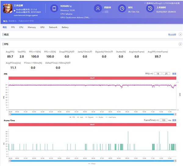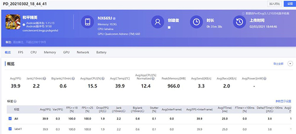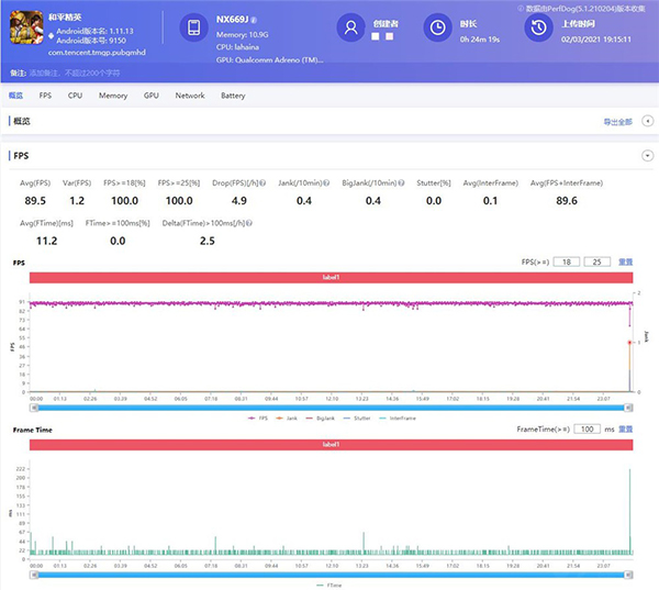 再高的分?jǐn)?shù),不落足到游戲上也沒有意義,畢竟有些手機(jī)專門為跑分使用過作弊手段。還是老規(guī)矩,開啟競技鍵之后分別啟動(dòng)《和平精英》《王者榮耀》兩款游戲,在快速控制面板中打開“游戲增強(qiáng)”功能,在“性能增強(qiáng)”下開啟“超級(jí)性能”,除此之外其它只開啟如準(zhǔn)星、肩鍵等輔助功能。使用Perfdog記錄幀數(shù),通過分析幀數(shù)和卡頓狀況,來衡量手機(jī)實(shí)際的性能表現(xiàn)。