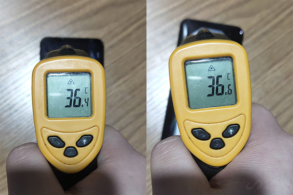 溫度測試的結(jié)果與《和平精英》比較類似,機(jī)身測試溫度正面36.4℃,背面36.6℃,相對(duì)來說背面的溫度有所上升。