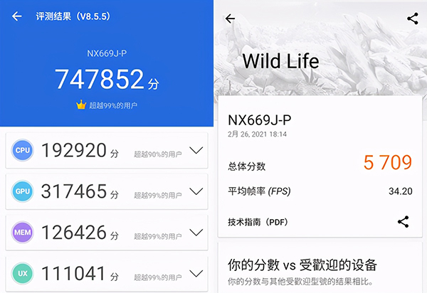 毋庸置疑,當(dāng)我們談及游戲手機(jī),性能一定是最為核心的部分,而在實(shí)際體驗(yàn)中,騰訊紅魔游戲手機(jī)6 Pro的表現(xiàn)依然驚艷。騰訊紅魔游戲手機(jī)6 Pro搭載高通驍龍888處理器,其采用獨(dú)特的三叢集CPU架構(gòu)設(shè)計(jì)和5nm先進(jìn)制程工藝,CPU應(yīng)用最新Kryo 680架構(gòu),加入了全新Cortex-X1超級(jí)大核,主頻高達(dá) 2.84GHz,內(nèi)存方面,騰訊紅魔游戲手機(jī)6 Pro搭載LPDDR5運(yùn)存和全新UFS3.1旗艦級(jí)閃存,支持 HS-G4 規(guī)范與5G+Wi-Fi 6增強(qiáng)版的雙網(wǎng)絡(luò)通信技術(shù),配備4500mAh雙電芯電池,最高支持120W快充。