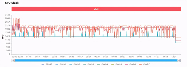 同時在這一小時的測試中,從幀率測試圖來看,CPU雖然波動很大,但沒有出現(xiàn)明顯的降頻,所以整體的幀率表現(xiàn)也比較平滑,超大核的頻率維持在2380MHz,大核為2227MHz,小核為1804MHz。性能調(diào)校非常激進(jìn)。