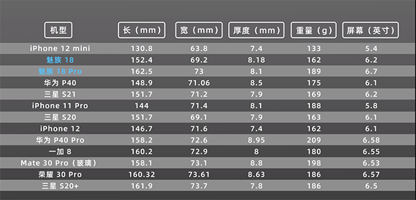 它的機(jī)身三圍分別是69.2*152.4*8.18,作為對(duì)比,iPhone 12的機(jī)身三圍分別是71.5*146.7*7.4,雖然魅族18比iPhone 12長(zhǎng)、厚了一點(diǎn),但橫向?qū)挾纫?,而且重量也同?62g。