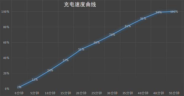 我從2%開始充電,實際測試下來,10分鐘到24%,20分鐘到51%,30分鐘到70%,40分鐘91%,48分鐘就99%了,到55分鐘的時候,K40充到100%,全部充滿了。從這個充電速度來看,對于一塊4520mAh的大電池,速度不算慢。