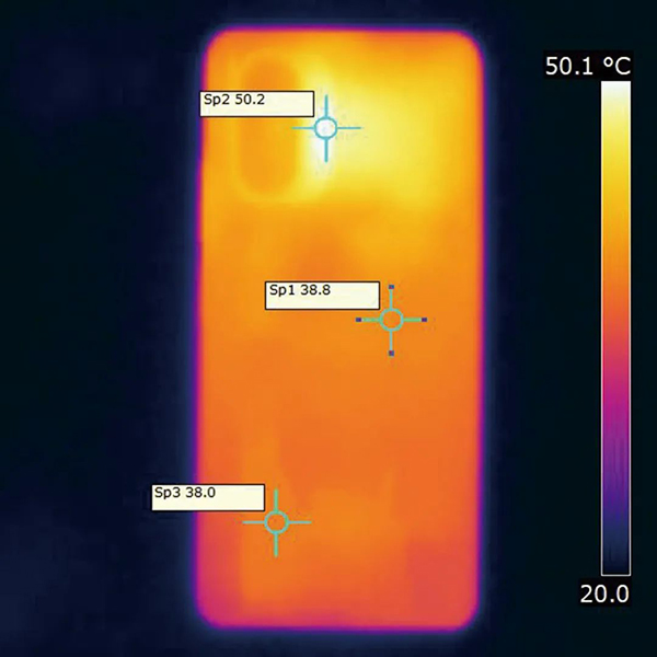 對于游戲玩家而言,流暢游戲是最基本的要求,其他方面也不能夠拖了后腿。在游戲測試即將結(jié)束時,我特意測試了Redmi K40 Pro的機身溫度。由于《原神》游戲璃月港場景負(fù)載過高,即便Redmi K40 Pro內(nèi)置了覆蓋重點發(fā)熱部位的液冷立體散熱系統(tǒng),也無法完全擋住驍龍888戰(zhàn)力爆發(fā),機身溫度最高處在后置相機模組附近,達(dá)到50.2℃,摸上去略有燙手的感覺,而機身其他部位的溫度控制得比較好,基本沒有超過40℃,液冷立體散熱系統(tǒng)在其中起到了重要作用。