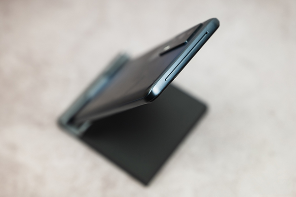 靠近攝像頭模組的標(biāo)識部分則是采用了亮面玻璃,與后蓋大部分的磨砂材質(zhì)形成了鮮明的對比。而側(cè)面頂部依舊擁有長條形的凹槽,算是一種設(shè)計語言的傳承。