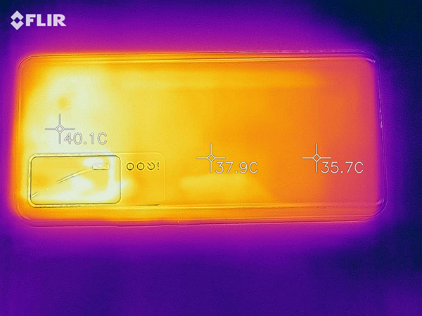 在不借助外掛的條件下,iQOO Neo5在試玩了一個(gè)小時(shí)《原神》之后,手機(jī)表面的最高溫度集中在攝像頭區(qū)域附近,達(dá)到了40℃左右。在我們測(cè)試的旗艦機(jī)型中屬于比較優(yōu)秀的溫控水平。在使用散熱背夾之后,背夾本身能夠制冷和風(fēng)扇的雙重手段帶走機(jī)身表面的一部分熱量。在連接散熱背夾10分鐘之后,機(jī)身表面的最高溫度下降了4℃左右。