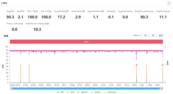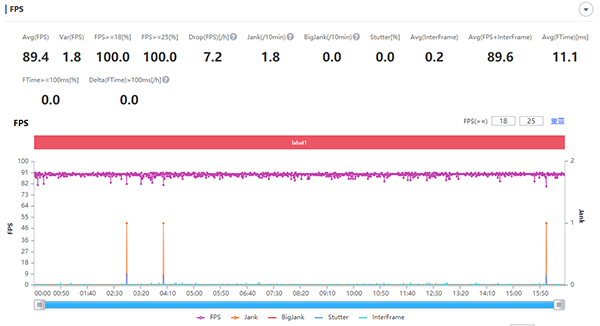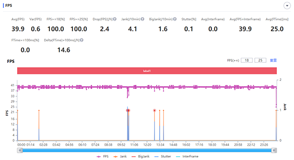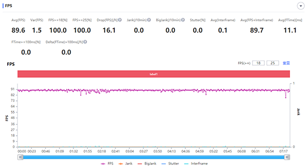 在《王者榮耀》超高幀率(90 FPS)+超高分辨率+抗鋸齒的設(shè)置下,兩局的平均幀率都為90.3 FPS,團(tuán)戰(zhàn)幀率基本處于81至86 FPS之間,其中最低的66 FPS出現(xiàn)在團(tuán)戰(zhàn)爆發(fā)時陣亡“黑屏”的瞬間。而在《和平精英》超高幀率(40 FPS)+超高清分辨率+抗鋸齒的設(shè)置下,全局平均幀率為39.9 FPS,最低幀率為6倍鏡瞄向房區(qū)時的32 FPS。