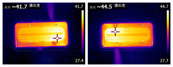 根據(jù)我們的測試,紅魔6 Pro在《穿越火線:槍戰(zhàn)王者》開啟極高幀率與極高畫質(zhì)后,在約24攝氏度的室內(nèi)環(huán)境下,打開機(jī)內(nèi)風(fēng)扇后未開啟電競鍵時長時間游戲后的機(jī)身最高溫度為41.7攝氏度,而在開啟電競鍵后的機(jī)身最高溫度則為44.5攝氏度。