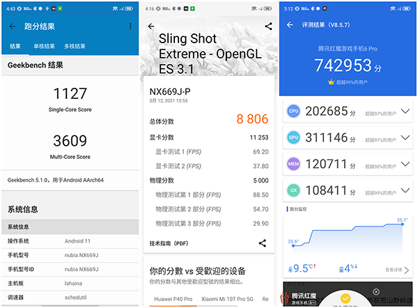 需要注意的是,上述成績均為未開啟電競游戲模式和未啟動散熱風(fēng)扇的情況下測出。因?yàn)椤锻跽邩s耀》這款游戲及《和平精英》的超高幀率(40 FPS)設(shè)置對于紅魔6 Pro來說可謂是輕輕松松,游戲運(yùn)行過程中手機(jī)只會給人溫?zé)岬母杏X,并不需要啟動徒增噪音和耗電的風(fēng)扇。