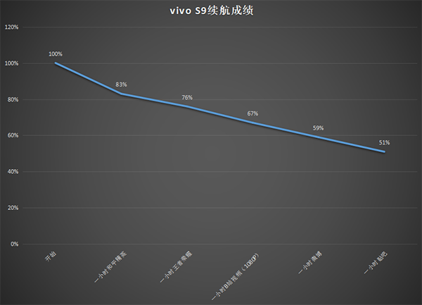 vivo S9雖說在7.35mm的機身內塞入了一塊4000mAh的電池,但面對5G和高刷屏所帶來的高功耗時難免有些捉襟見肘。根據筆者實際測試,vivo S9的測試結果讓筆者十分意外,在長達5小時的續(xù)航測試后還剩余了51%的電量,可以說vivo和天璣在功耗優(yōu)化這一方面做得是相當出色了。