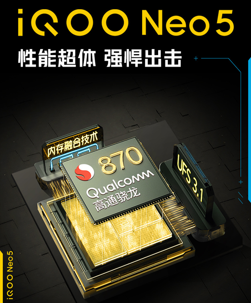 反觀iQOO Neo5,在處理器的選擇上選擇了相對(duì)走了穩(wěn)健路數(shù)的驍龍870,額外還加入一枚“獨(dú)立顯示芯片”的雙芯組合。