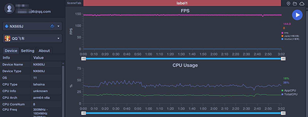 《QQ飛車》144Hz幾乎穩(wěn)成一條直線;