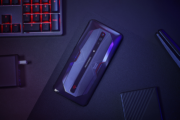 作為電競?cè)Φ臉伺洌挪薀粜牟蝗毕?,底部的紅魔LOGO依舊可以開啟信仰之光,兩側(cè)的LED炫彩燈可以提供豐富的色彩以及樣式選擇。眾所周知,光污染可以提升游戲勝率:)。另外也是本次最大賣點的就是背后文字LOGO邊上的Tencent Games,這也是紅魔與騰訊第一次深度合作聯(lián)合出品的手機。