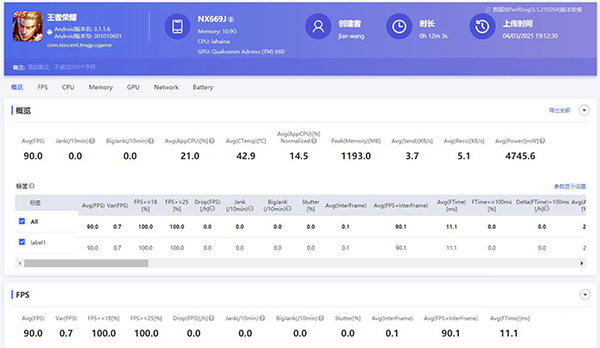 首先我們來看一下騰訊紅魔游戲手機(jī)6 Pro在《王者榮耀》90幀模式下的表現(xiàn),特效全開,手機(jī)未做任何優(yōu)化,游戲時(shí)長(zhǎng)約12分鐘,具體實(shí)測(cè)成績(jī)?nèi)缦拢?